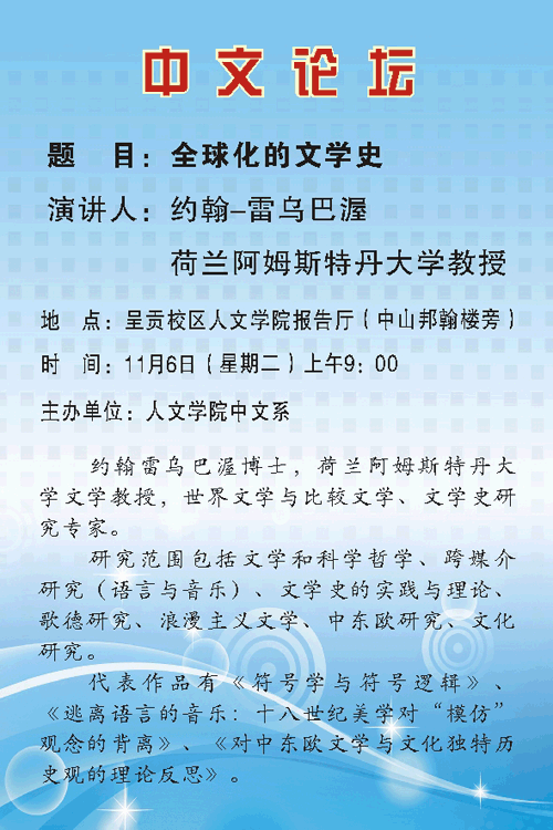 (中文论坛)全球化的文学史