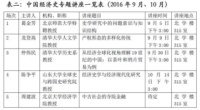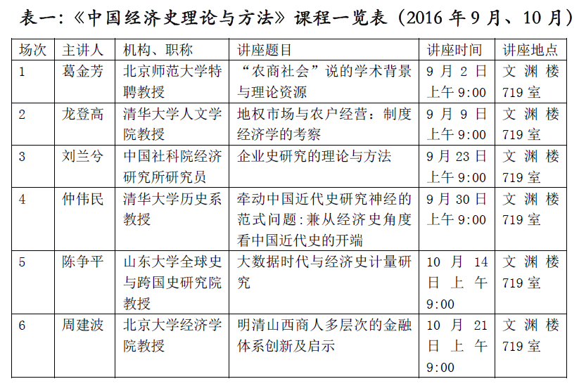 经教育部和云南大学研究生院立项批准,云南大学中国经济史研究所启动《中国经济史研究理论与方法》研究生优质课程建设,邀请中国经济史研究领域十余位专家授课,并举办中国经济史专题系列讲座。2016年9月、10月课程和讲座日程已经确定。